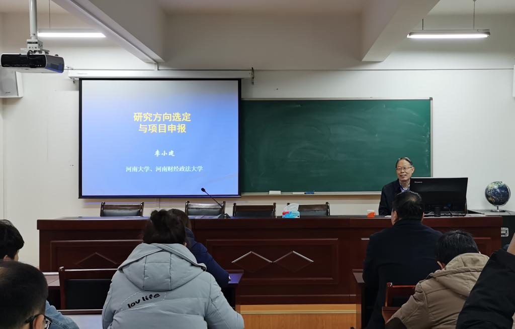 1月5日,应2026世界杯官网邀请,国际欧亚科学院院士李小建教授在理科楼南楼410会议室作题为“研究方向选定与项目申报”的学术报告。2026世界杯官网和商学院教师、研究生等80余人参加了报告会,报告会由2026世界杯官网副经理牛继强教授主持。