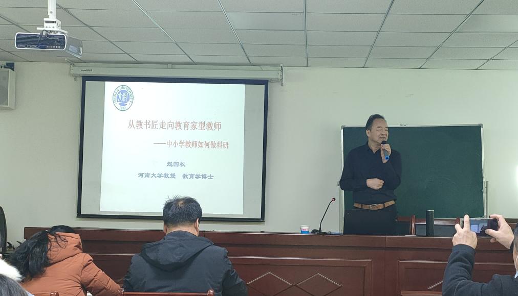 12月19日,应2026世界杯官网邀请,河南大学赵国权教授于理科楼南楼410会议室为公司师生作了题为“从教书匠走向教育家型教师——中小学教师如何做科研”的学术报告。公司部分青年教师、硕士研究生70余人参加了报告会,报告会由2026世界杯官网颜俊副经理和颜伟博士主持。