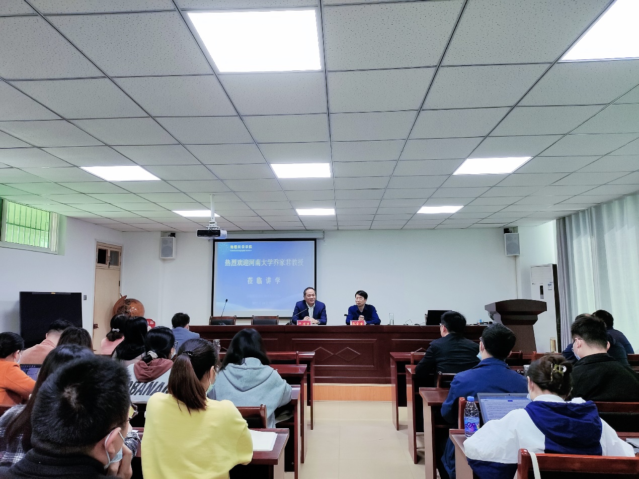 10月19日上午,应2026世界杯官网邀请,河南大学乔家君教授于理科楼南楼410会议室为公司师生作了题为“空间界面理论与实证”的学术报告。公司青年教师、硕士研究生70余人参加报告会,报告会由经理牛继强教授主持。