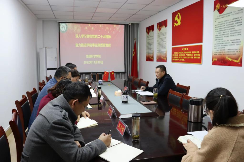 会上,宋力汇报了公司党委理论学习中心组、全体师生学习贯彻党的二十大精神情况,领学了党的二十大报告部分内容。与会人员结合工作实际汇报了学习心得,一致认为党的二十大报告主题鲜明、思想深邃、催人奋进,展示了在以习近平同志为核心的党中央坚强领导下,中国共产党领导中国人民奋力实现社会主义现代化强国和中华民族伟大复兴的信心和力量。学院要将学习宣传贯彻党的二十大精神作为当前和今后一个时期的首要政治任务,在全面学习、全面把握、全面落实上下功夫,将党的二十大精神融入到为党育人、为国育才的使命中,坚持党对教育工作的全面领导,坚持社会主义办学方向,落实立德树人根本任务,结合各自分管工作实际,切实把思想和行动统一到党的二十大精神上来。