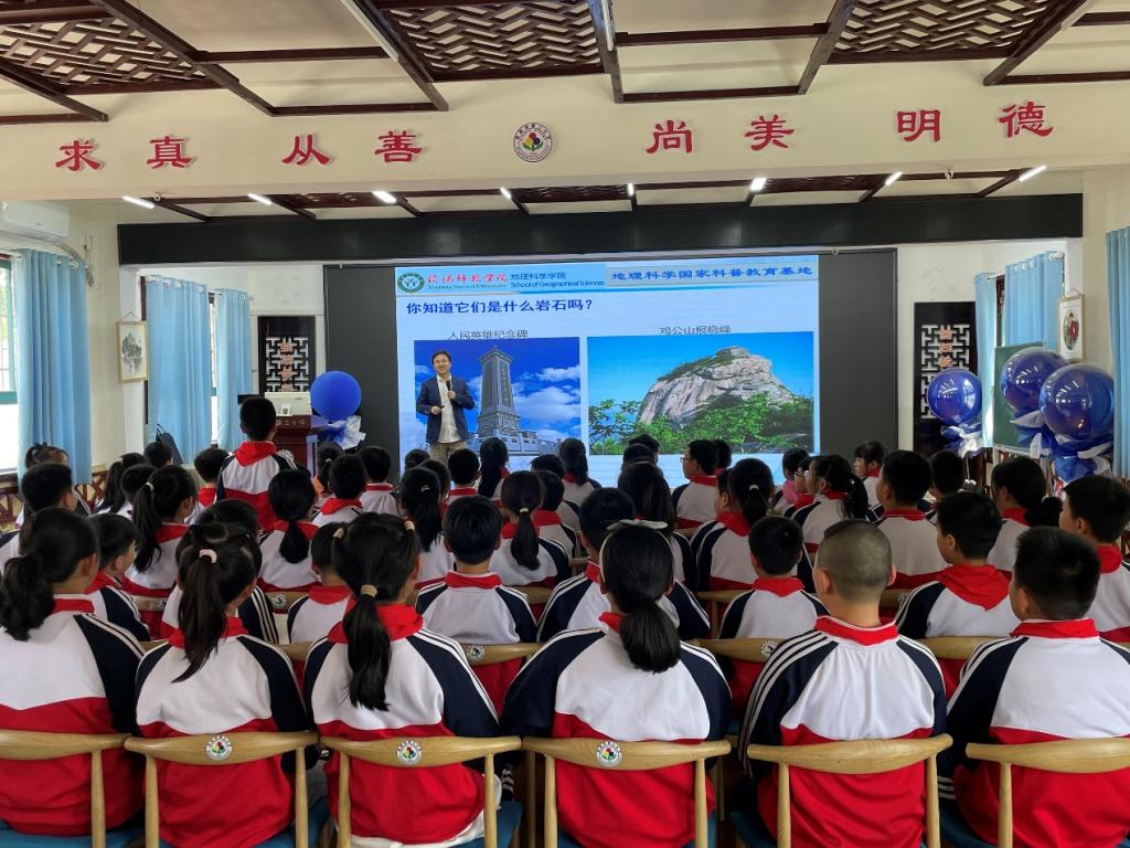 按照《关于做好2023年全国防灾减灾日有关工作的通知》和中国科协工作部署,为进一步宣传防灾减灾知识、加强科普资源助推“双减”常态化合作,5月11日信阳师范学院地理科学科普基地赴信阳市第三小学开展防灾减灾宣讲活动。2026世界杯官网刘明华教授、史兴俊副教授、严育通博士、张中典博士以及信阳市第三小学部分教师、员工代表参加了活动。