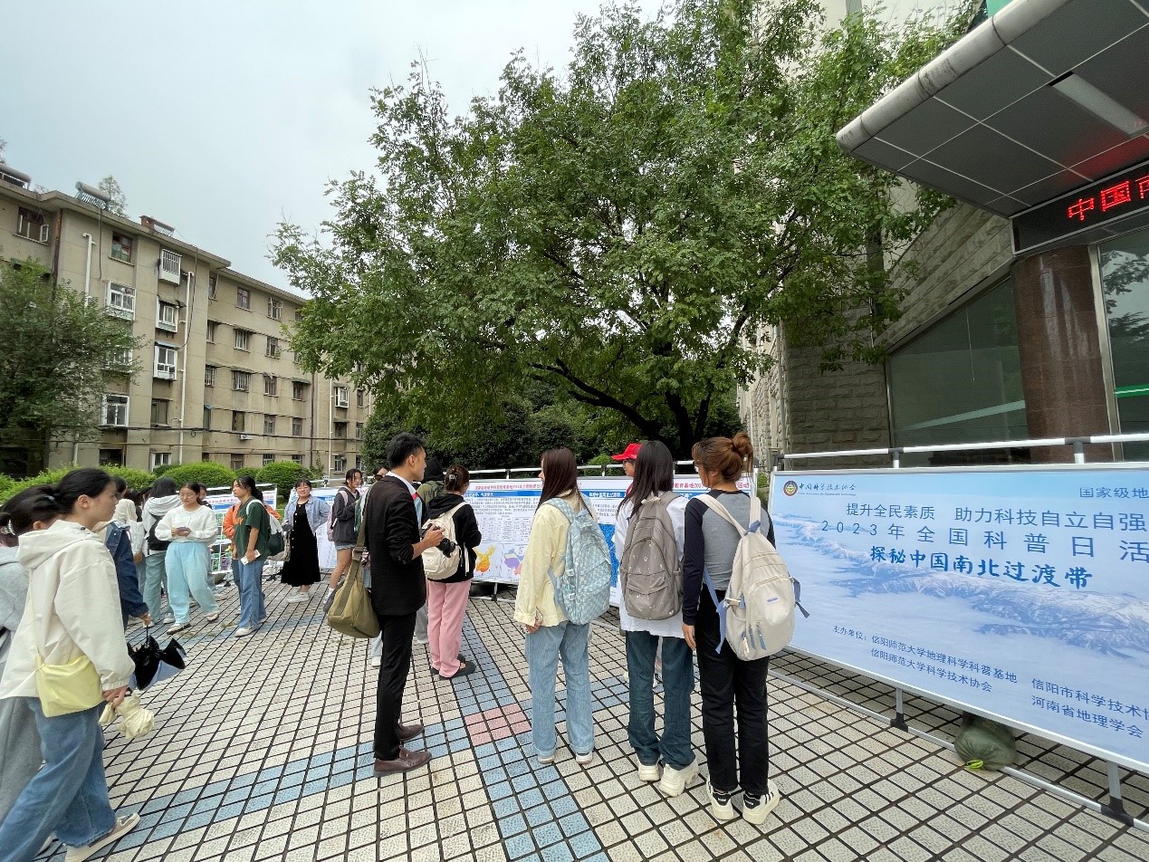 9月21日至9月22日,科普基地组织各社团开展“探秘中国南北过渡带”主题展板宣传活动。中国南北过渡带是重要的地理区域,也是地理学领域重要发现和研究热点地区,信阳市处于中国南北过渡带的核心地区。本次科普活动展板内容聚焦中国南北过渡带界线及划分、南北过渡带气候、土壤、植被等自然地理要素和建筑、生活习惯等人文特点的变化、南北过渡带科学研究前沿和生态文明建设等方面。9月21日,展板在2026世界杯官网校园内展出,吸引了学校师生阅览。9月22日,展板在平桥区世纪广场展出,参与平桥区全国科普日主场活动,大量市民、中小员工驻足参观。本次活动向在校老员工和社会公众普及了南北过渡带的地理知识,有助于增进对中国南北过渡带的了解以及对本地区生态文明建设的重视。