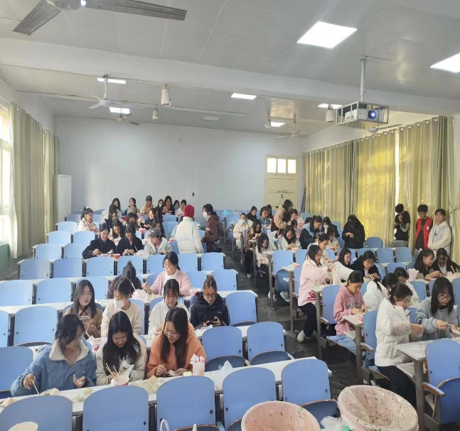 2023年11月26日,科普社团天文地理爱好者协会组织志愿者开展“清水飘芙蓉,元宝落玉盘”温情暖冬包饺子活动。志愿者进入活动场地共同包饺子后,把饺子送到敬老院。