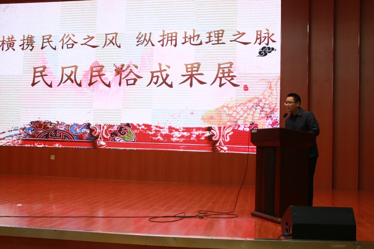 活动伊始,由文学院蔡老师为现场观众做了一个题为“非物质文化遗产保护与传承”的讲座,使同学们对非物质文化遗产的特点和保护现状有了大致的了解,为民风民俗成果的展出做了重要铺垫。随后,由天文地理爱好者协会会长高将对此次民风民俗活动做总结,他首先向对本次活动的举办给予大力支持的领导老师及兄弟社团表示真挚的感谢,他强调本次活动的成功举办对普及民风民俗知识,弘扬传统文化具有重要意义。紧接着是极具地区特色的文艺表演,来自各少数民族的表演者为现场观众带来了一场民风民俗的视听盛宴。其中,美丽的哈萨克族女孩儿王雨桐凭借着动人的歌喉用一首《纳西篝火啊哩哩》将西南地区浓郁而独特的音乐风格表现的淋漓尽致不仅欢快活泼,赢得场下观众如潮般的掌声。两位维吾尔族同学带来的民族舞蹈更是将全场气氛推向高潮。接下是激动人心的颁奖环节,主持人宣布获奖名单,由现场领导老师分别为获得一二三等奖的同学颁奖。最后,由社团指导老师林昊对此次活动做总结发言,他指出,此次活动不仅是场比赛,更是一场文化盛宴,非物质文化遗产在这个物欲横流的时代已经在快速流失,此次活动的举办对保护非物质文化遗产具有重要意义。