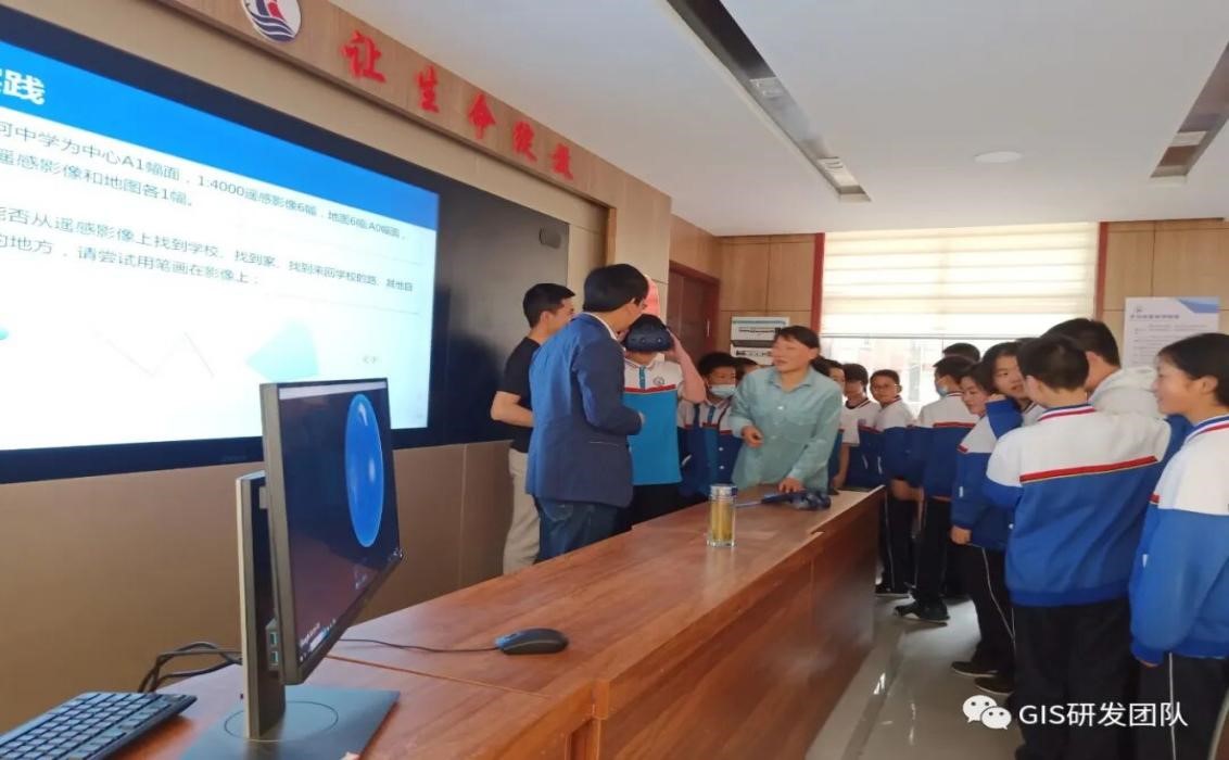 2020年5月16日,应信阳市浉河中学邀请,本科普教育基地张兴国副教授为同学们作了题为“数字地球”的科普讲座。首先浉河中学李金枝老师介绍了本次活动的背景、意义、目的、内容等基本情况。然后,张老师从数字地球基础(地球形状、给地球建个坐标系统、球面变平面、通过矢量(点线面)和遥感影像记录地表信息)、应用(大众出行、自然资源管理、智慧城市、三维校园、疫情防控)、实践(遥感影像判读、空间分析、VR可视化)三大方面进行了详细介绍。最后,在互动环节,给同学们发放了A0幅面信阳市遥感影像和地图纸质地图,在老师们的指导下学习阅读、判读遥感影像,了解信阳市重要地标方位,分析讨论家里位置及上学路径等。本次实践中,也配置了VR设备,每位同学都通过谷歌地球VR版、校园VR版等软件体验了典型地理场景下身临其境的震撼。通过本次活动,让初中生加深了对地理学的理解,拓宽了视野,增强了对地理课程的兴趣,将会对后续学习发挥重要作用。