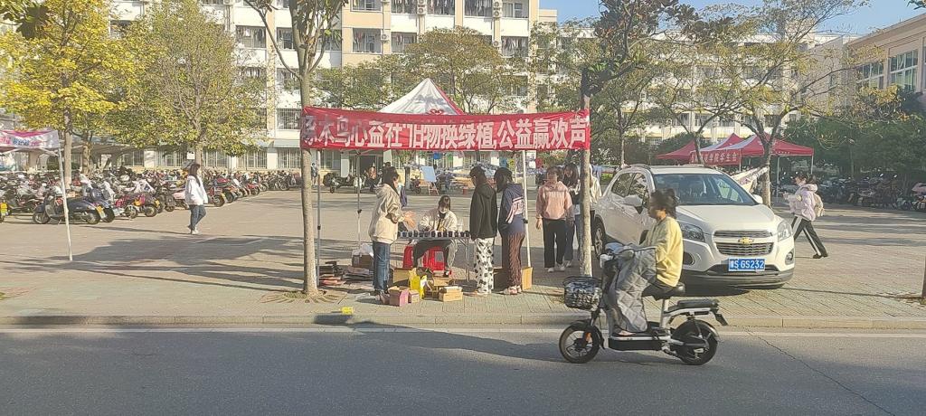 为提高员工的环境保护意识,2022年11月6日至10日,信阳师范学院地理科学科普基地啄木鸟心益社于八餐小广场举行了“旧物换绿植 公益赢欢声”绿植换购活动。全校师生对本次活动具有极高的热情。