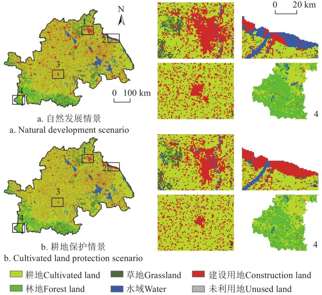 图2不同发展情景下2030年土地利用类型分布图