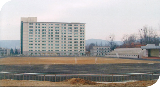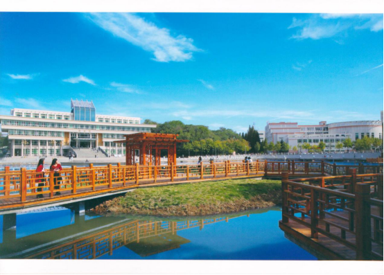 【体育馆】建于2005年,目前是全省高校中屈指可数的体育场馆。它造型独特,上圆下方,三面环绿,分上下两层,上面是比赛用馆,下面是训练附馆。是学校开展大型体育活动的重要场所。