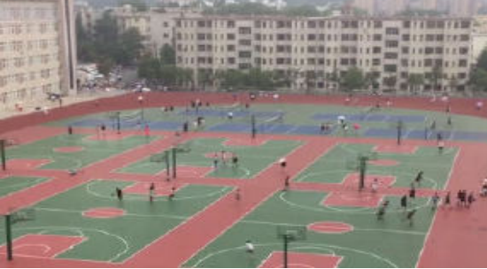 【西操场】2000年,学校将校园西北角的池塘填充平整,修建了一个标准的体育场,结束了学校没有标准体育场的历史。2007年,体育场设施进行维修改造,铺设塑胶跑道,重新整修主席台。2015年,对西操场进行第二次改造,对塑胶跑道进行翻新,通过一系列改造为学校体育活动的开展创造了更加有利的条件。