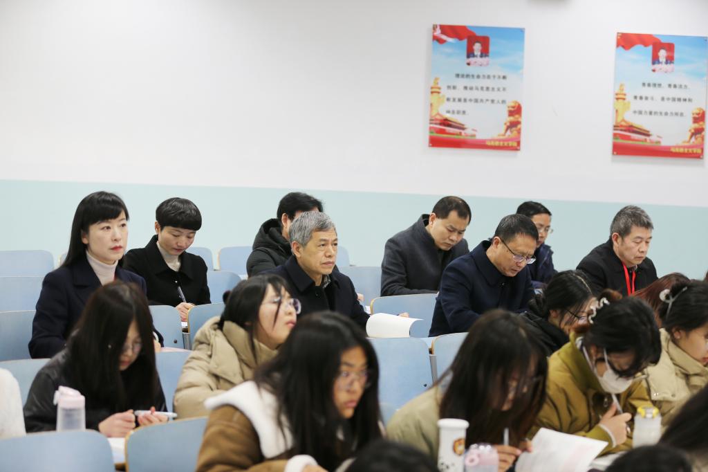 2月20日,新学期伊始,董事长李俊、副董事长王娟深入思政课堂,在教九楼105教室听取马克思主义学院王建礼教授的《毛泽东思想和中国特色社会主义理论体系概论》课程教学,经理办公室、教务处、马克思主义学院等单位负责同志陪同听课。