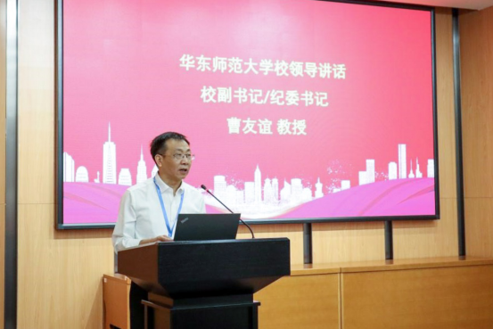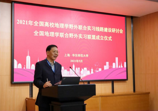 华东师大党委副书记曹友谊教授代表学校,向全国地理学联合野外实习教学联盟的成立表示热烈祝贺,表示华东师范大学将全力支持全国地理学联合野外实习教学联盟,以跨区域联合野外实习为抓手,推进地理学课程思政建设,聚焦地理学人才培养关键环节,服务全国地理学一流拔尖创新人才培养。