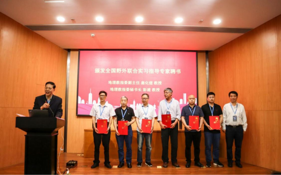 教育部高等学校地理学教学指导委员会副主任、南京大学地理与海洋学院经理鹿化煜教授,为北京师范大学杨胜天教授、兰州大学王乃昂教授、南京大学王腊春教授、福建师范大学曾从盛教授、武汉大学林爱文教授、北京大学王红亚教授、华东师范大学郑祥民教授、东北师范大学吴正方教授、中国地质大学(武汉)李长安教授以及鲁东大学王庆教授颁发全国野外联合实习指导专家聘书。