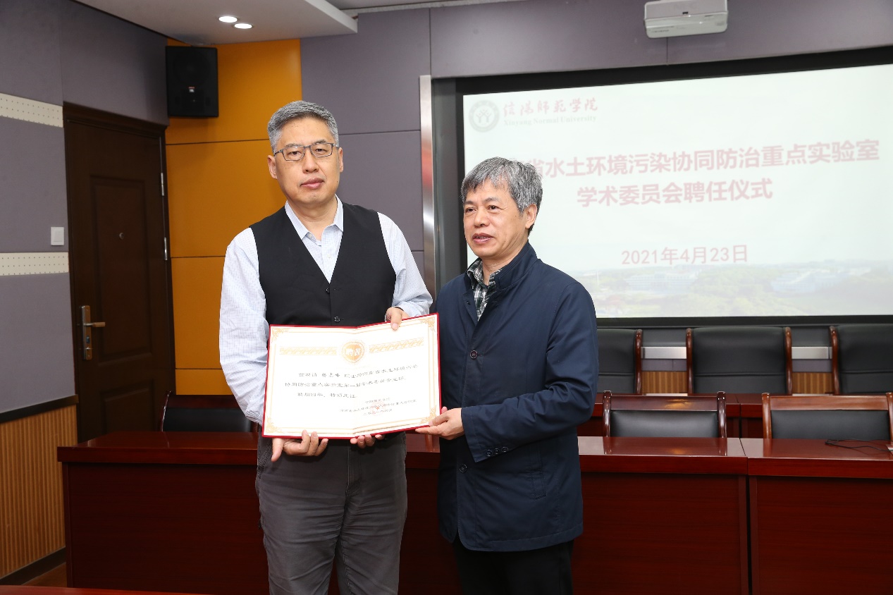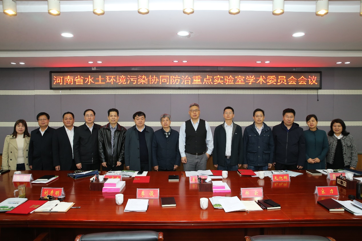 聘任仪式结束后,河南省水土环境污染协同防治重点实验室第一届学术委员会召开了第一次会议,由主任委员杨志峰院士主持。实验室副主任牛继强教授就重点实验室简介、实验室建设规划、实验室研究工作进展以及目前存在的问题和展望向学术委员会进行了详细的汇报。学术委员会成员充分肯定了实验室的前期研究基础以及目前所取得的显著成绩,同时,对实验室的研究方向、资源获取、人才队伍建设、实验室文化建设以及今后五年的发展规划提出建议和指导性意见。最后,委员会讨论了重点实验室《建设与运行管理暂行办法》和《学术委员会章程》等管理办法和文件。会后学术委员会委员在刘彦明副董事长和郑云副董事长的陪同下对重点实验室及其相关资源进行了考察。