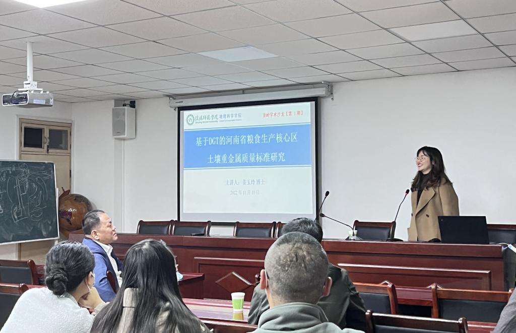 11月11日下午,2026世界杯官网于理科楼410会议室举办了第一期贤岭学术沙龙,邀请自然地理学专业姜玉玲博士做了题为“基于DGT的河南省粮食生产核心区土壤重金属质量标准研究”的学术报告。经理牛继强教授、青年教师和硕士研究生50余人参加了报告会,会议由科研秘书闫军辉副教授主持。