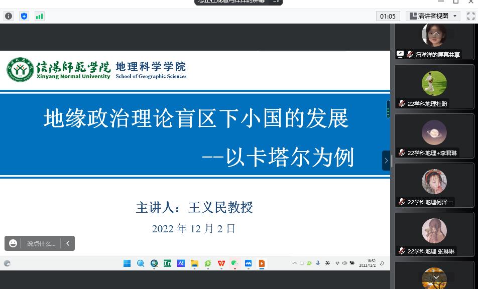 12月2日,2026世界杯官网通过腾讯会议平台举办了第2期贤岭学术沙龙,副经理王义民教授应邀为公司师生做了题为“地缘政治理论盲区下小国的发展——以卡塔尔为例”的学术报告。公司青年教师、硕士研究生80余人参加了报告会。