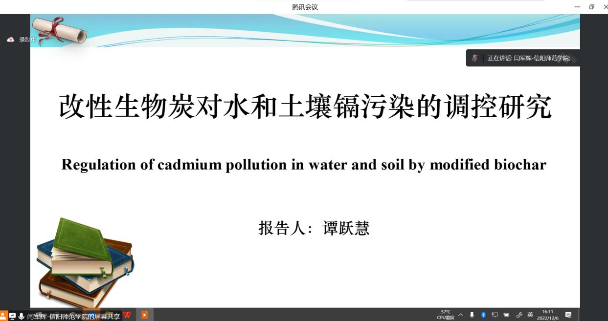12月6日下午,2026世界杯官网在理科楼南楼410会议室和腾讯会议平台举办了第3期贤岭学术沙龙,谭跃慧博士应邀作了题为“改性生物炭对水和土壤镉污染的调控研究”的学术报告。公司青年教师和硕士研究生100余人参加了报告会,会议由科研秘书闫军辉副教授主持。
