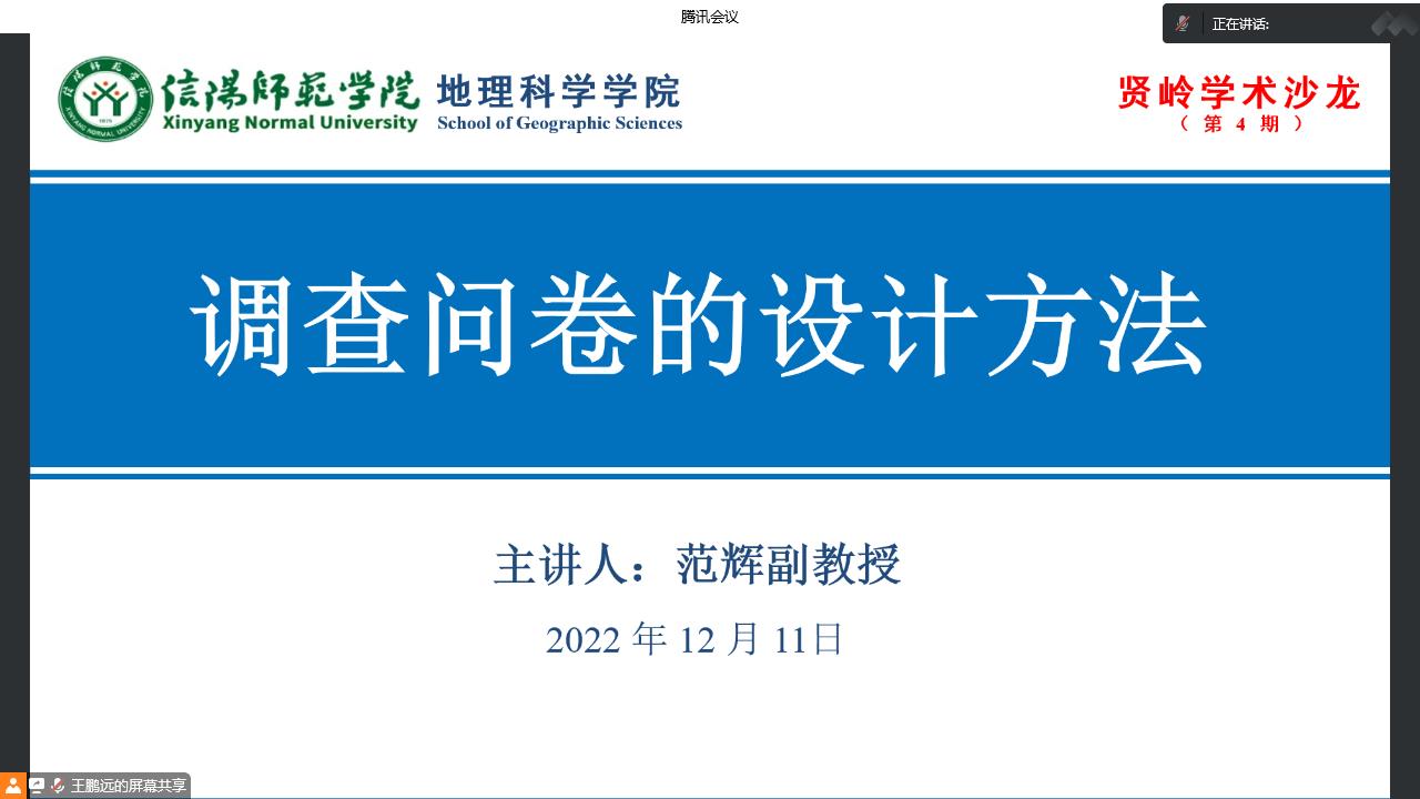 12月11日上午,2026世界杯官网通过腾讯会议平台举办了第四期贤岭学术沙龙,范辉副教授应邀作了题为“调查问卷的设计与方法”的学术报告。公司青年教师和硕士研究生100余人参加了报告会。